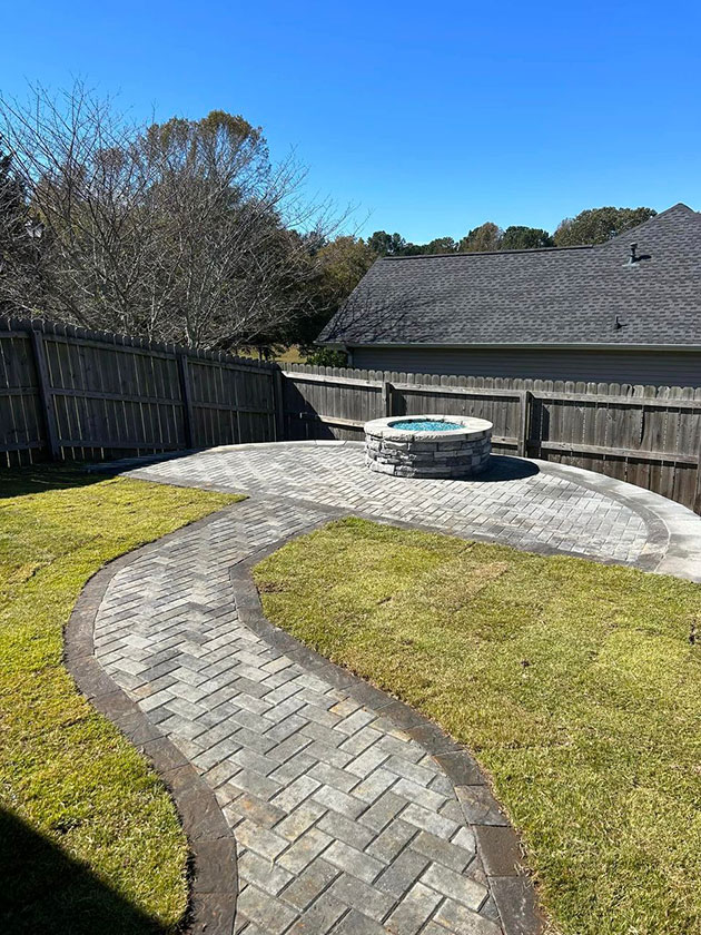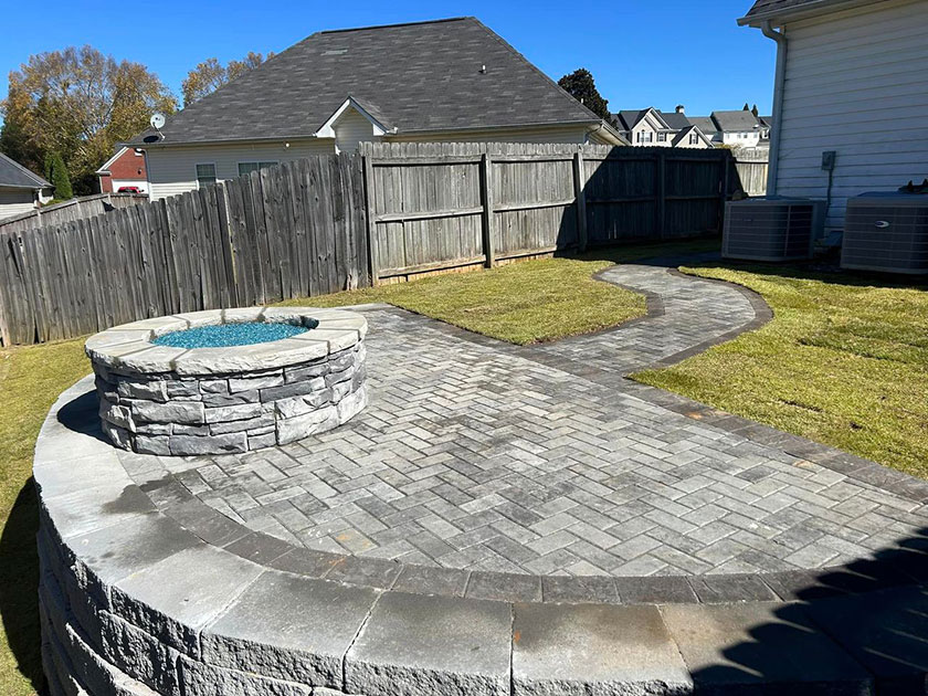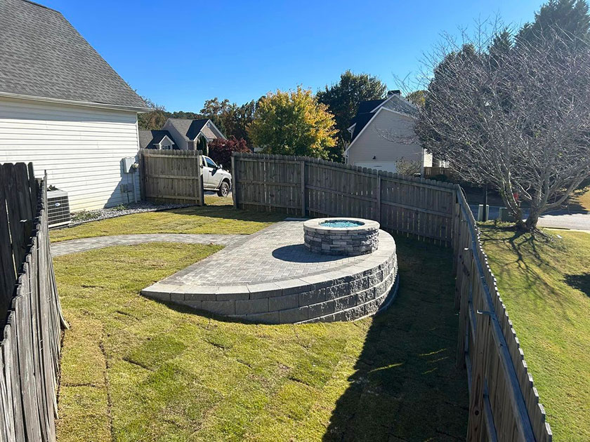 Just in time for cooler weather. We made the most of little space in this back yard with a gas fire pit paver patio, walkway & new paver patio of the house.